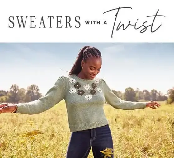 Not your average knit. Playful 3D embellishments add texture, charm, and a touch of whimsy—cozy has never looked so fun. Stop by and shop in store today.