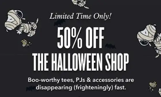 Limited time only! Shop in store and get 50% off boo-worthy tees, PJs & accessories.